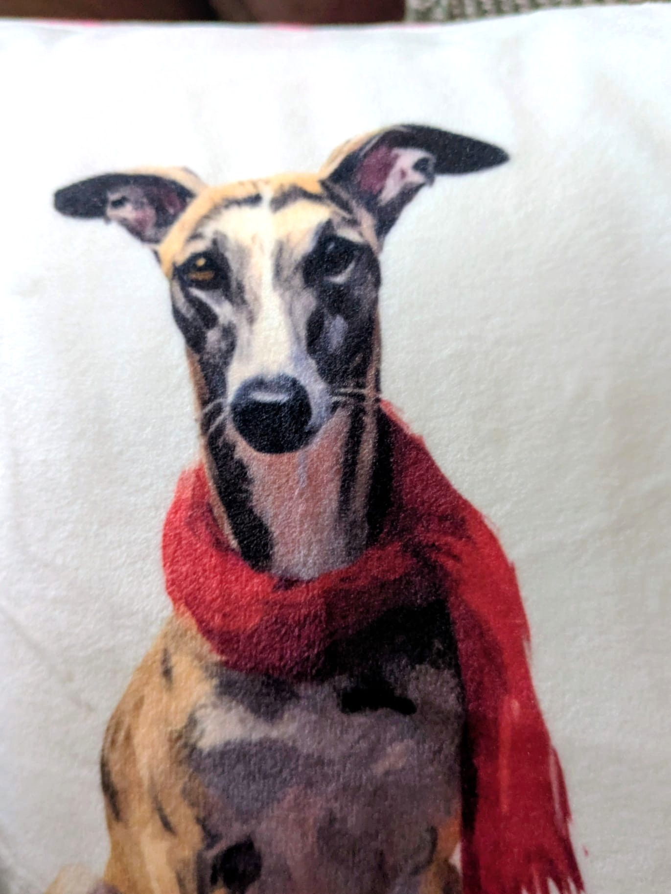 Superb quality velvet soft feel cushion with the fantastic 4 Wise Hounds design, includes cover and inner. The reverse of the cover is red as pictured.